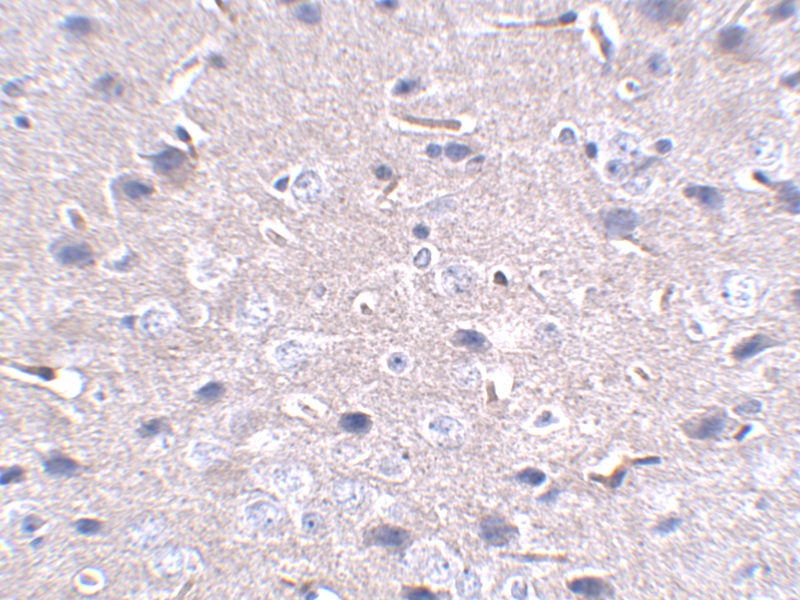 Immunohistochemistry of PD-1 in mouse brain tissue with PD-1 antibody at 2.5 μg/mL.