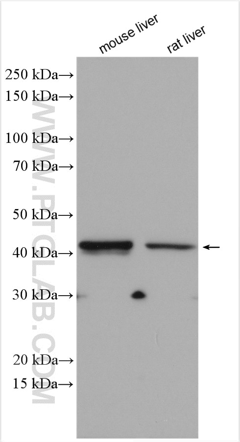 The TDO2 antibody from Proteintech is a rabbit polyclonal antibody to a recombinant protein of human TDO2. This antibody recognizes human, mouse, rat antigen. The TDO2 antibody has been validated for the following applications: WB, IHC, IF/ICC, ELISA analysis.