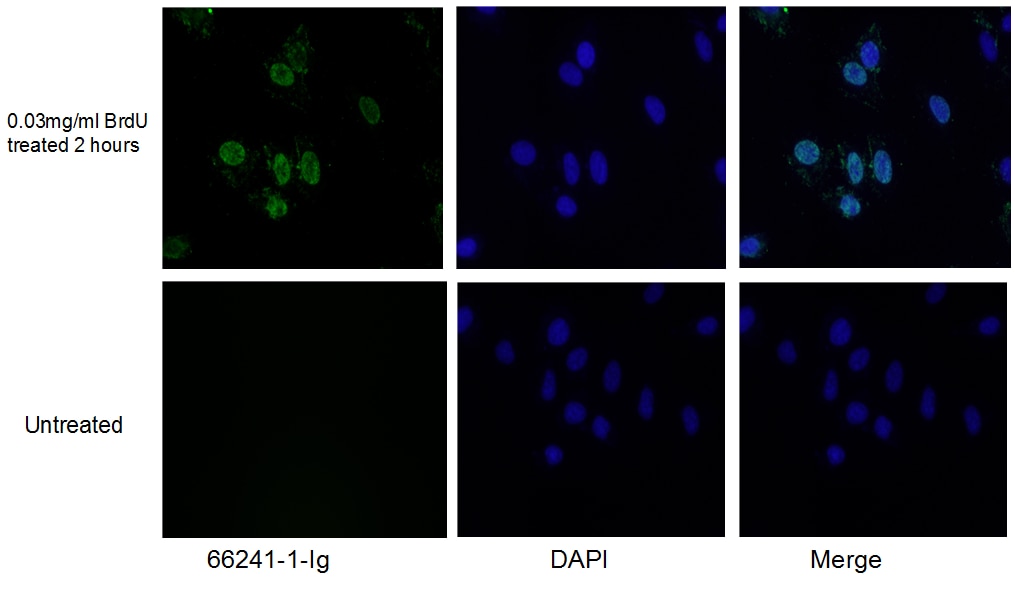 The BrdU antibody from Proteintech is a mouse monoclonal antibody to a small molecule. This antibody recognizes human, mouse, rat antigen. The BrdU antibody has been validated for the following applications: IHC, IF/ICC, ELISA analysis.