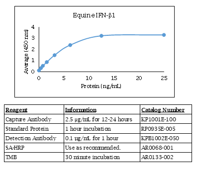 The Equine IFN beta polyclonal antibody is unlabeled and has been qualified for use in ELISA and Western blot applications. It is the capture antibody in the Kingfisher Biotech Equine IFN beta ELISA. The Equine IFN beta antibody was produced in rabbits and is antigen-affinity purified. The reactivity by species is: (Bovine IFN-beta - Weak) (Equine IFN-beta1 - Strong) (Mouse IFN-beta - Weak) (Swine IFN-beta - Weak). For research use only. Made in the USA