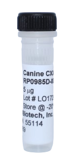 The Canine CX3CL1 yeast-derived recombinant protein is not tagged and is naturally endotoxin-free. The purity is greater than 98% as visualized by SDS-PAGE analysis. Canine CX3CL1 applications are for cell culture, ELISA standard, and Western Blot Control. The Canine CX3CL1 yeast-derived recombinant protein can be purchased in multiple sizes. Canine CX3CL1 Specifications: (Molecular Weight: 8.7 kDa) (Amino Acid Sequence: QHLGVKKCNV TCHKMTSEIP VALLVHYQRN QESCGKPAII LKTKQNRIFC ADPKERWVQK AIAHLEHQIA VTIRNG (76)) (Gene ID: 487265). For research use only. Made in the USA
