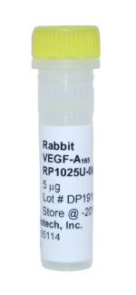 The Rabbit VEGF-A yeast-derived recombinant protein is not tagged and is naturally endotoxin-free. The purity is greater than 98% as visualized by SDS-PAGE analysis. Rabbit VEGF-A applications are for cell culture, ELISA standard, and Western Blot Control. Rabbit VEGF-A yeast-derived recombinant protein can be purchased in multiple sizes. Rabbit VEGF-A Specifications: (Molecular Weight: 19.3 kDa) (Amino Acid Sequence: APMAEEGDNK PHEVVKFMEV YRRSYCQPIE TLVDIFQEYP DEIEYIFKPS CVPLVRCGGC CNDESLECVP TEEFNVTMQI MRIKPHQGQH IGEMSFLQHN KCECRPKKDR ARQENPCGPC SERRKHLFVQ DPQTCKCSCK NTDSRCKARQ LELNERTCRC DKPRR (165)) (Gene ID: 100008899). For research use only. Made in the USA