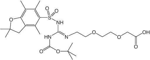8-[N-t-Butyloxycarbonyl-N'-(2,2,4,6,7-pentamethyldihydrobenzofuran-5-sulfonyl)]amidino-3,6-dioxaoctanoic acid, {2-[2-(N-Boc-N'-Pbf-amidino)ethoxy]ethoxy}acetic acid, Boc,Pbf-amidino-Ado, Boc,Pbf-amidin