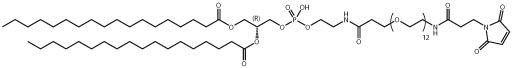 (2R)-3-((((46-(2,5-dioxo-2,5-dihydro-1H-pyrrol-1-yl)-4,44-dioxo-7,10,13,16,19,22,25,28,31,34,37,40-dodecaoxa-3,43-diazahexatetracontyl)oxy)(hydroxy)phosphoryl)oxy)propane-1,2-diyl distearate, mal-PEG(12)-DSPE, maleimido-PEG(12)-distearoylphosphatidylethanolamine
