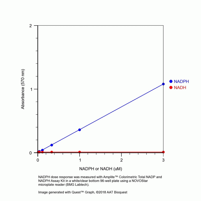 本キットは、100μLのサンプル(100nM)中の10pmolのNADPまたはNADPHをワンステップで高感度に検出する比色アッセイです。96ウェルまたは384ウェルマイクロプレートフォーマットで簡単に行えます。