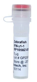 The Zebrafish IFN gamma 1-1 yeast-derived recombinant protein is not tagged and is naturally endotoxin-free. The purity is greater than 98% as visualized by SDS-PAGE analysis. Zebrafish IFN gamma 1-1 applications are for cell culture, ELISA standard, and Western Blot Control. Zebrafish IFN gamma 1-1 yeast-derived recombinant protein can be purchased in multiple sizes. Zebrafish IFN gamma 1-1 Specifications: (Molecular Weight: 17.4 kDa) (Amino Acid Sequence: YRFRRSRSEN PILNTNIEKL KTHYNTLAKD WVGKSVFVSH LDQLNSKPTC TCQAVLLEGM LSIYEDIFQD MMNKSDNKEV RDDLKKVIHE VKNLKHKYNE EHKLWRELQD IHSVKAKNGT IQERALNDFL KVYYRASTEK RHLHMS (146)) (Gene ID: 553965). For research use only. Made in the USA