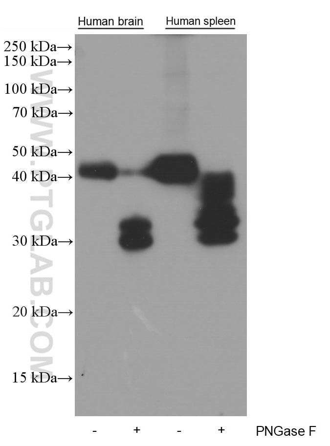 The CD200 antibody from Proteintech is a mouse monoclonal antibody to a recombinant protein of human CD200. This antibody recognizes human antigen. The CD200 antibody has been validated for the following applications: WB, IHC, ELISA analysis.
