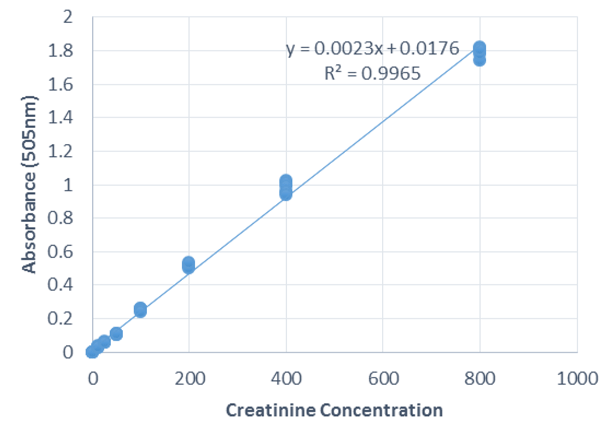 Contents: ●96 well plate. ●Color reagent (26ml). ●NaOH solution (3ml). ●Creatinine Stock Solution for standard curve (800μg/ml).