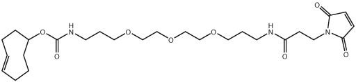 trans-Cyclooctene-PEG(3)-maleimide, (E)-cyclooct-4-enyl 17-(2,5-dioxo-2,5-dihydro-1H-pyrrol-1-yl)-15-oxo-4,7,10-trioxa-14-azaheptadecylcarbamate