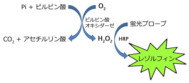 Our Pyruvate Assay Kit measures pyruvate in biological samples. First, pyruvate is oxidized by pyruvate oxidase, producing hydrogen peroxide. The hydrogen peroxide is then detected at ex. 530-570 nm/em. 590-600 nm using a specific fluorometric probe. Pyruvate levels in unknown samples are determined based on the provided pyruvate standard curve.