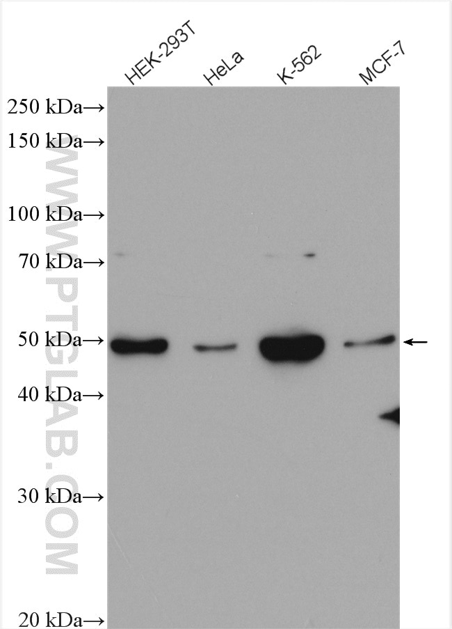 The Chk1 antibody from Proteintech is a rabbit polyclonal antibody to a recombinant protein of human Chk1. This antibody recognizes human antigen. The Chk1 antibody has been validated for the following applications: WB, IHC, IF/ICC, FC (Intra), IP, ELISA analysis.