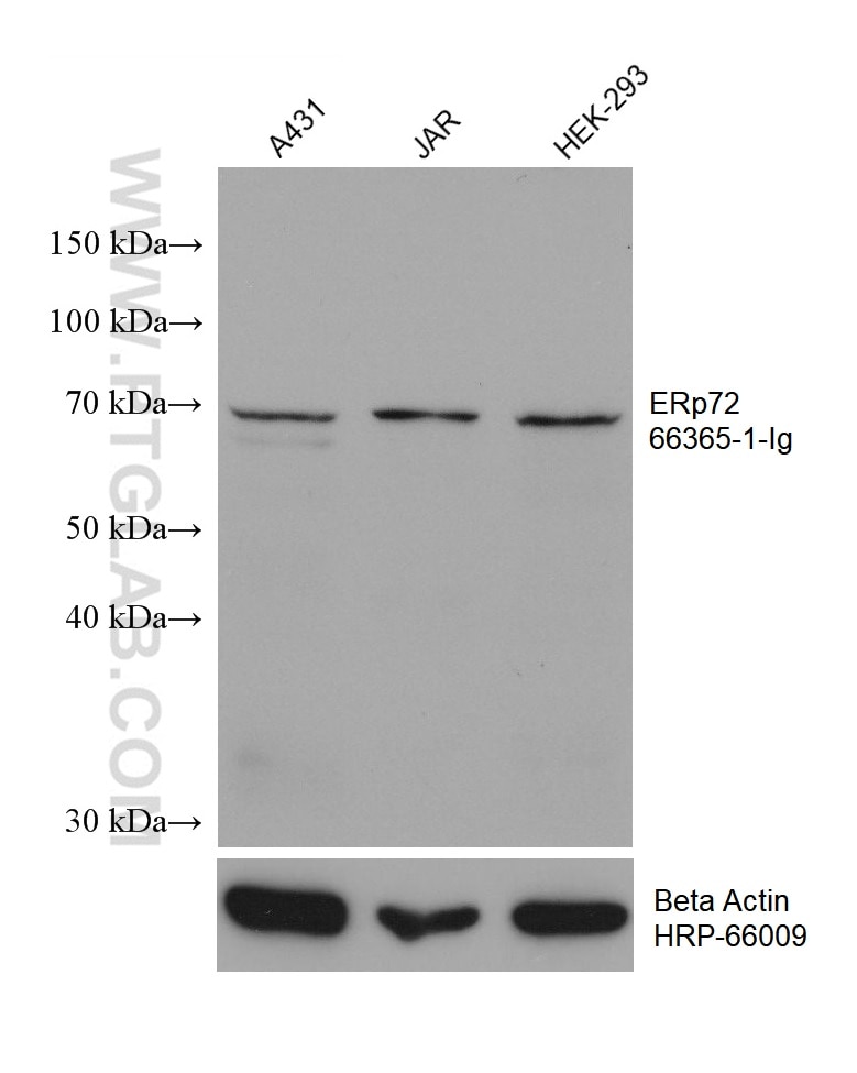 The ERp72 antibody from Proteintech is a mouse monoclonal antibody to a recombinant protein of human ERp72. This antibody recognizes human antigen. The ERp72 antibody has been validated for the following applications: WB, IHC, ELISA analysis.