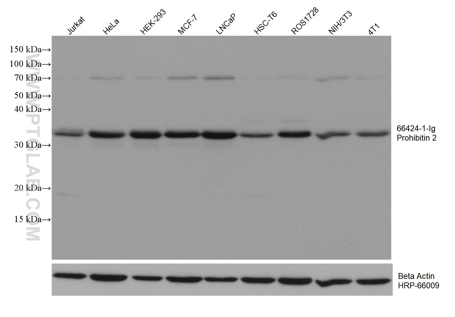 The Prohibitin 2 antibody from Proteintech is a mouse monoclonal antibody to a recombinant protein of human Prohibitin 2. This antibody recognizes human, mouse, rat antigen. The Prohibitin 2 antibody has been validated for the following applications: WB, IHC, IF/ICC, ELISA analysis.