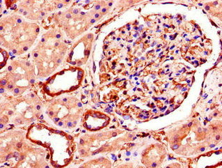 Immunohistochemistry of paraffin-embedded human kidney tissue using CSB-PA875720LA01HU at dilution of 1:100