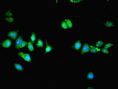 Immunofluorescent analysis of Hela cells using CSB-PA875720LA01HU at dilution of 1:100 and Alexa Fluor 488-congugated AffiniPure Goat Anti-Rabbit IgG(H+L)