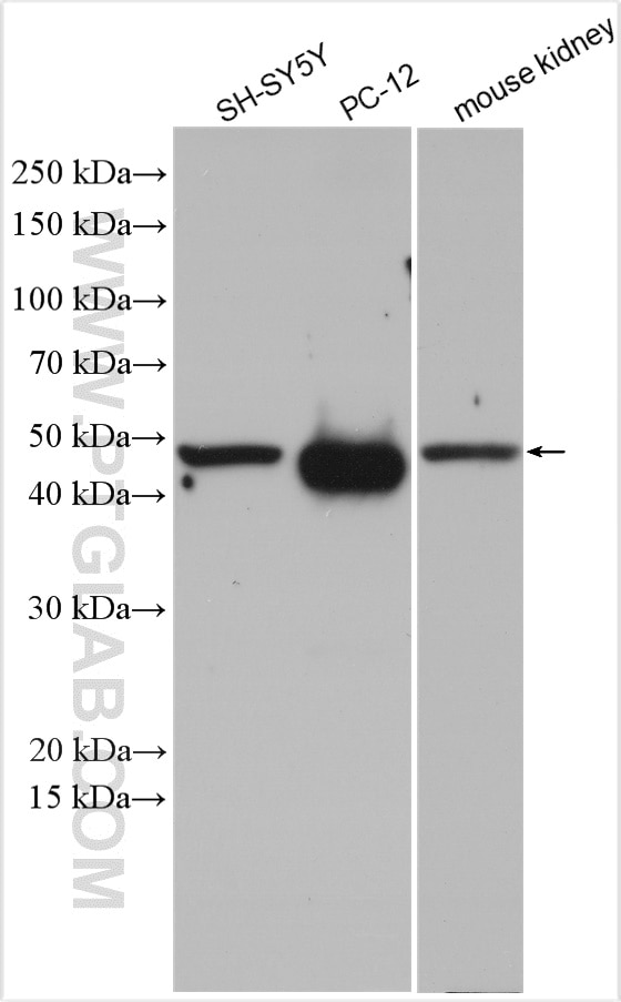 The DOPA decarboxylase/DDC antibody from Proteintech is a rabbit polyclonal antibody to a recombinant protein of human DOPA decarboxylase/DDC. This antibody recognizes human, mouse, rat antigen. The DOPA decarboxylase/DDC antibody has been validated for the following applications: WB, IHC, IF/ICC, IP, ELISA analysis.