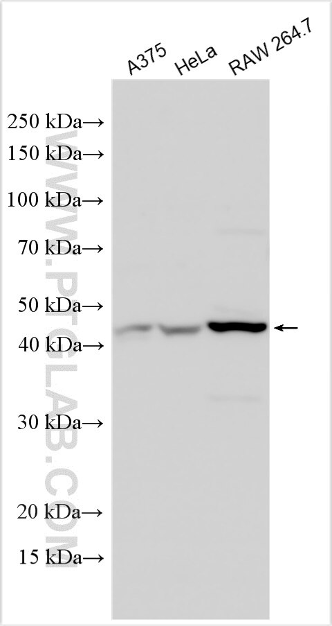 The GPRC5A,RAI3 antibody from Proteintech is a rabbit polyclonal antibody to a recombinant protein of human GPRC5A,RAI3. This antibody recognizes human, mouse antigen. The GPRC5A,RAI3 antibody has been validated for the following applications: WB, IHC, FC (Intra), ELISA analysis.