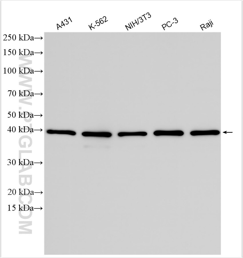 The CSNK2A1 antibody from Proteintech is a rabbit polyclonal antibody to a recombinant protein of human CSNK2A1. This antibody recognizes human, mouse, rat antigen. The CSNK2A1 antibody has been validated for the following applications: WB, IHC, IF/ICC, IP, ELISA analysis.