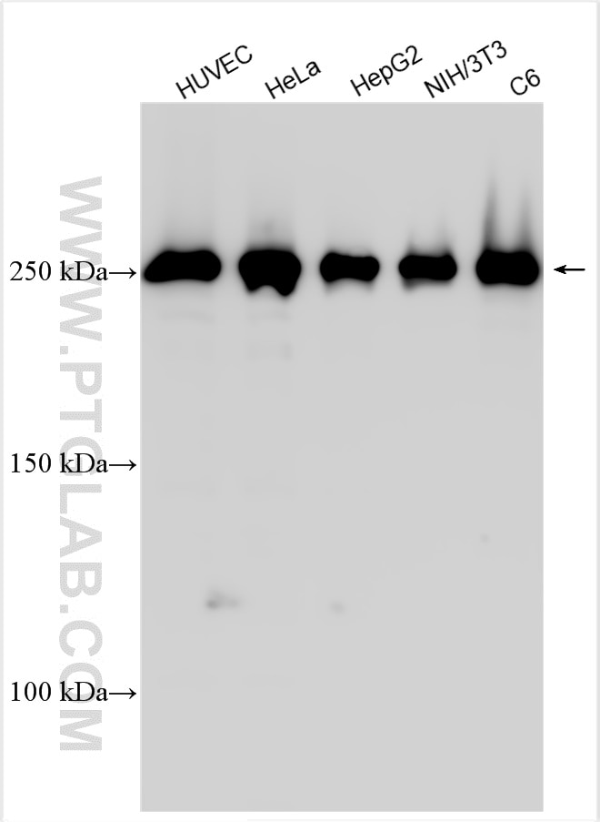 The Talin-1 antibody from Proteintech is a rabbit polyclonal antibody to a recombinant protein of human Talin-1. This antibody recognizes human, mouse, rat antigen. The Talin-1 antibody has been validated for the following applications: WB, IHC, IF/ICC, FC (Intra), IP, ELISA analysis.