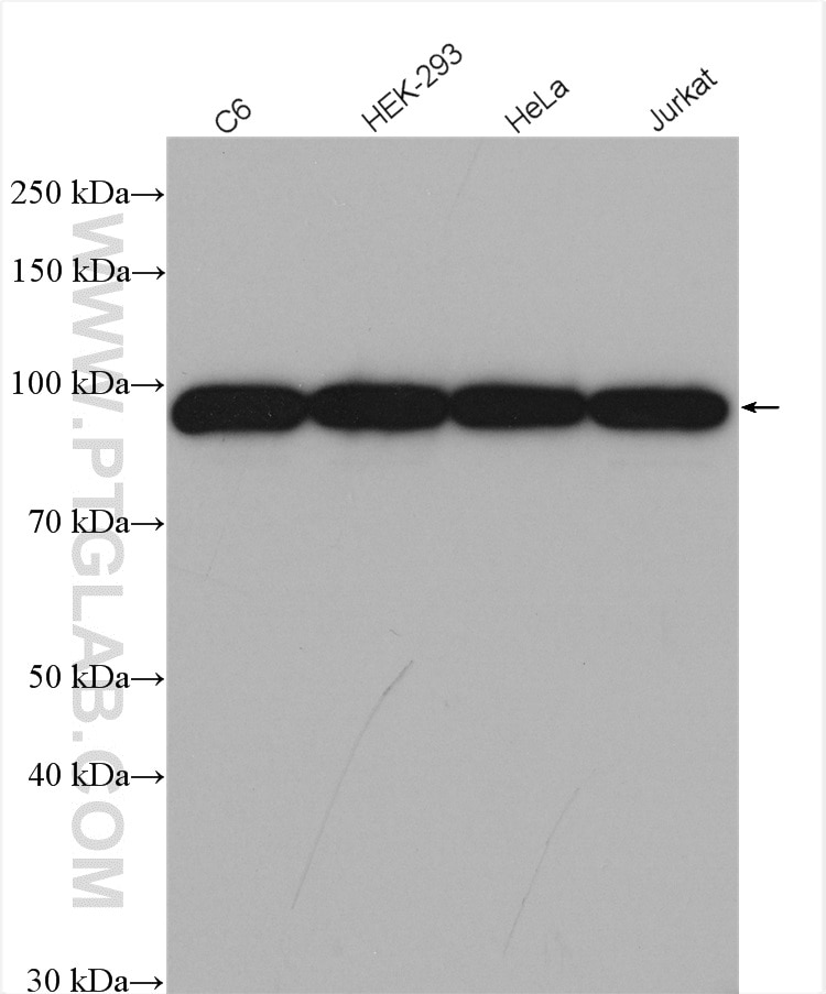 The EEF2 antibody from Proteintech is a rabbit polyclonal antibody to a recombinant protein of human EEF2. This antibody recognizes human, mouse, rat antigen. The EEF2 antibody has been validated for the following applications: WB, IHC, IF/ICC, FC (Intra), IP, ELISA analysis.