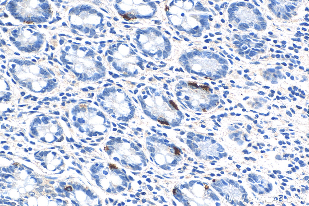 The LGR4 antibody from Proteintech is a rabbit polyclonal antibody to a fusion protein of human LGR4. This antibody recognizes human, mouse, rat antigen. The LGR4 antibody has been validated for the following applications: IHC, ELISA analysis.