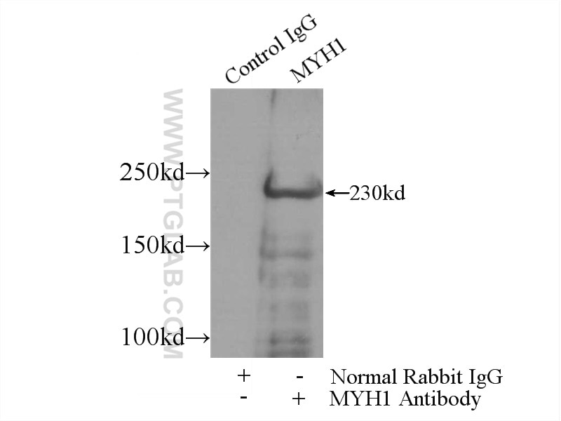 The MYH1 (N-terminal) antibody from Proteintech is a rabbit polyclonal antibody to a recombinant protein of human MYH1 (N-terminal). This antibody recognizes human, mouse antigen. The MYH1 (N-terminal) antibody has been validated for the following applications: IHC, IF-P, IP, ELISA analysis.