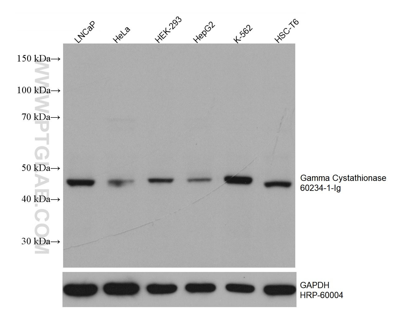 The Gamma Cystathionase antibody from Proteintech is a mouse monoclonal antibody to a recombinant protein of human Gamma Cystathionase. This antibody recognizes human, mouse, rat antigen. The Gamma Cystathionase antibody has been validated for the following applications: WB, IHC, IF/ICC, ELISA analysis.