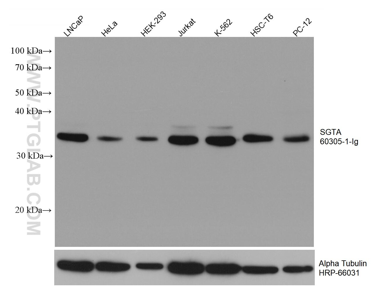 The SGTA antibody from Proteintech is a mouse monoclonal antibody to a recombinant protein of human SGTA. This antibody recognizes human, mouse, rat antigen. The SGTA antibody has been validated for the following applications: WB, IHC, IF/ICC, ELISA analysis.