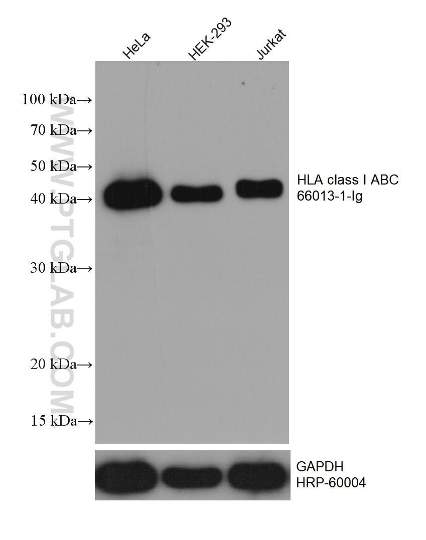 The HLA class I ABC antibody from Proteintech is a mouse monoclonal antibody to a recombinant protein of human HLA class I ABC. This antibody recognizes human, pig antigen. The HLA class I ABC antibody has been validated for the following applications: WB, IHC, IF/ICC, FC, ELISA analysis.