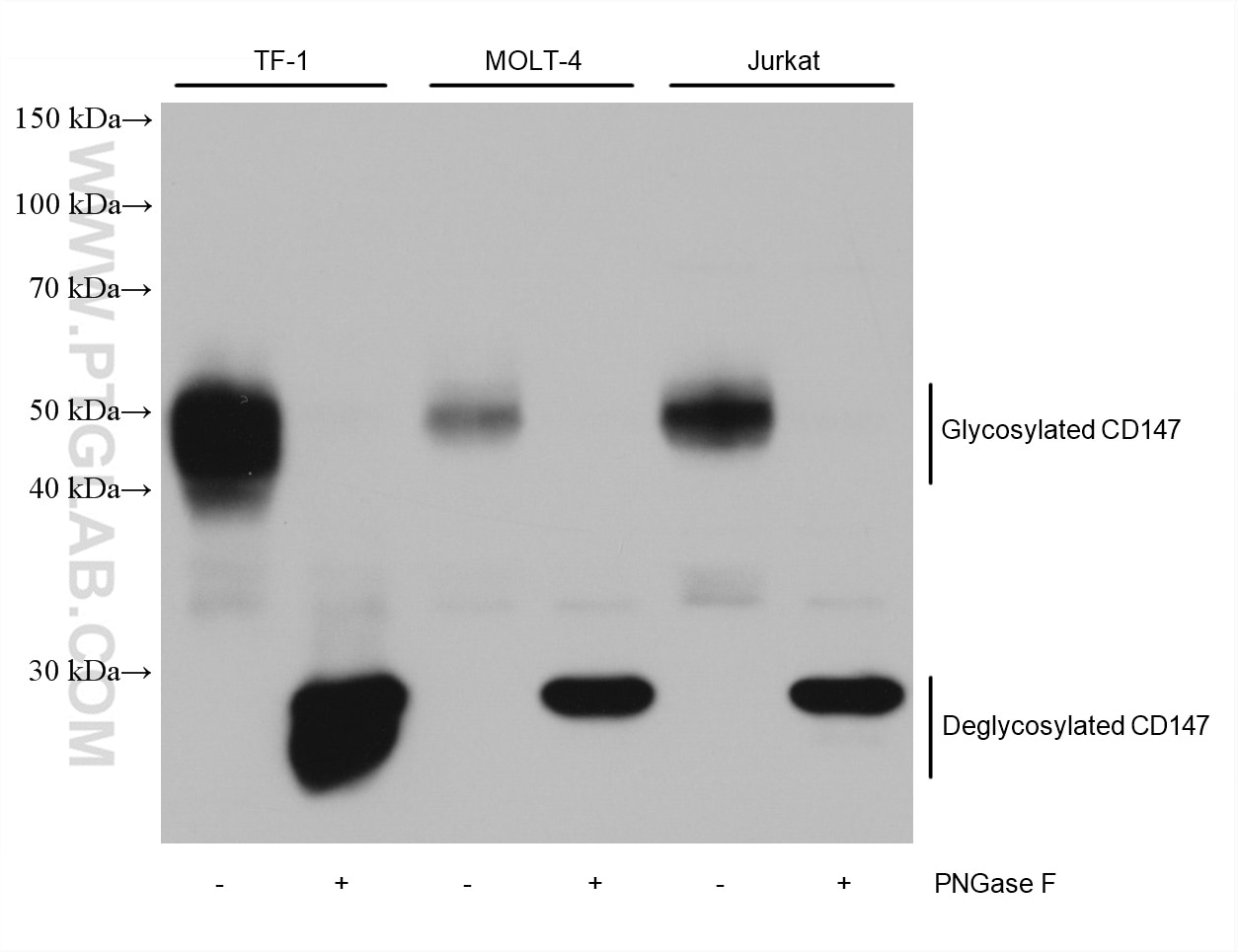 The CD147 antibody from Proteintech is a mouse monoclonal antibody to a recombinant protein of human CD147. This antibody recognizes human, pig antigen. The CD147 antibody has been validated for the following applications: WB, IHC, IF/ICC, IF-P, ELISA analysis.