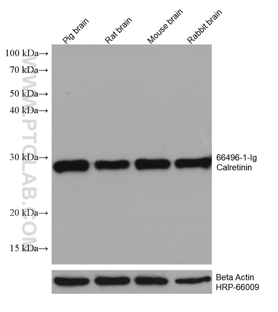 The Calretinin antibody from Proteintech is a mouse monoclonal antibody to a recombinant protein of human Calretinin. This antibody recognizes human, mouse, rat, pig antigen. The Calretinin antibody has been validated for the following applications: WB, IHC, IF/ICC, IF-P, ELISA analysis.