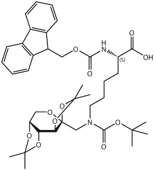 N-alpha-(9-Fluorenylmethyloxycarbonyl)-N-epsilon-[6-(t-butyloxycarbonyl)aminohexanoyl]-N-epsilon-(2,3:4,5-di-O-isopropylidene-1-deoxyfructopyranosyl)-L-lysine, Fmoc-L-Lys(Boc)(2,3:4,5-di-O-isopropylidene-1-deoxyfructopyranosyl)-OH, (S)-2-(((9H-fluoren-9-yl)methoxy)carbonylamino)-6-(tert-butoxycarbonyl(((3aS,5aR,8aS,8bR)-2,2,7,7-tetramethyltetrahydro-3aH-bis[1,3]dioxolo[4,5-b:4',5'-d]pyran-3a-yl)methyl)amino)hexa