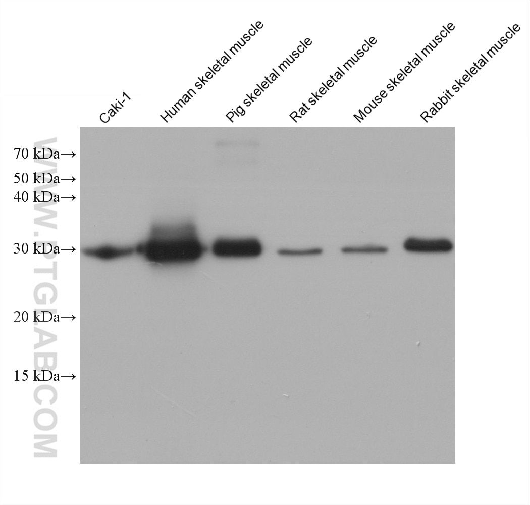 The CA3 antibody from Proteintech is a mouse monoclonal antibody to a recombinant protein of human CA3. This antibody recognizes human, mouse, rat, pig, rabbit antigen. The CA3 antibody has been validated for the following applications: WB, IHC, IF-P, ELISA analysis.