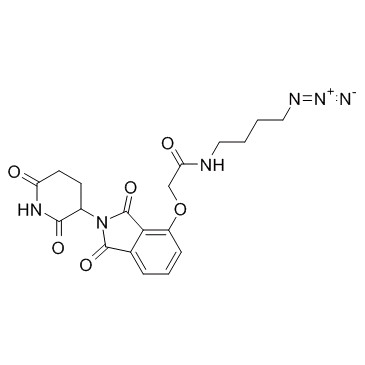 Thalidomide-O-amido-C4-N3 is a synthesized E3 ligase ligand-linker conjugate that incorporates the Thalidomide based cereblon ligand and a linker used in PROTAC technology.
