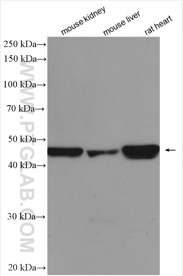 The PDK4 antibody from Proteintech is a rabbit polyclonal antibody to a recombinant protein of human PDK4. This antibody recognizes human, mouse, rat antigen. The PDK4 antibody has been validated for the following applications: WB, IHC, IF/ICC, ELISA analysis.