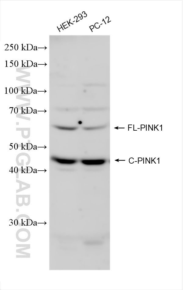 The PINK1 antibody from Proteintech is a rabbit polyclonal antibody to a recombinant protein of human PINK1. This antibody recognizes human, mouse, rat antigen. The PINK1 antibody has been validated for the following applications: WB, IHC, IF-P, ELISA analysis.