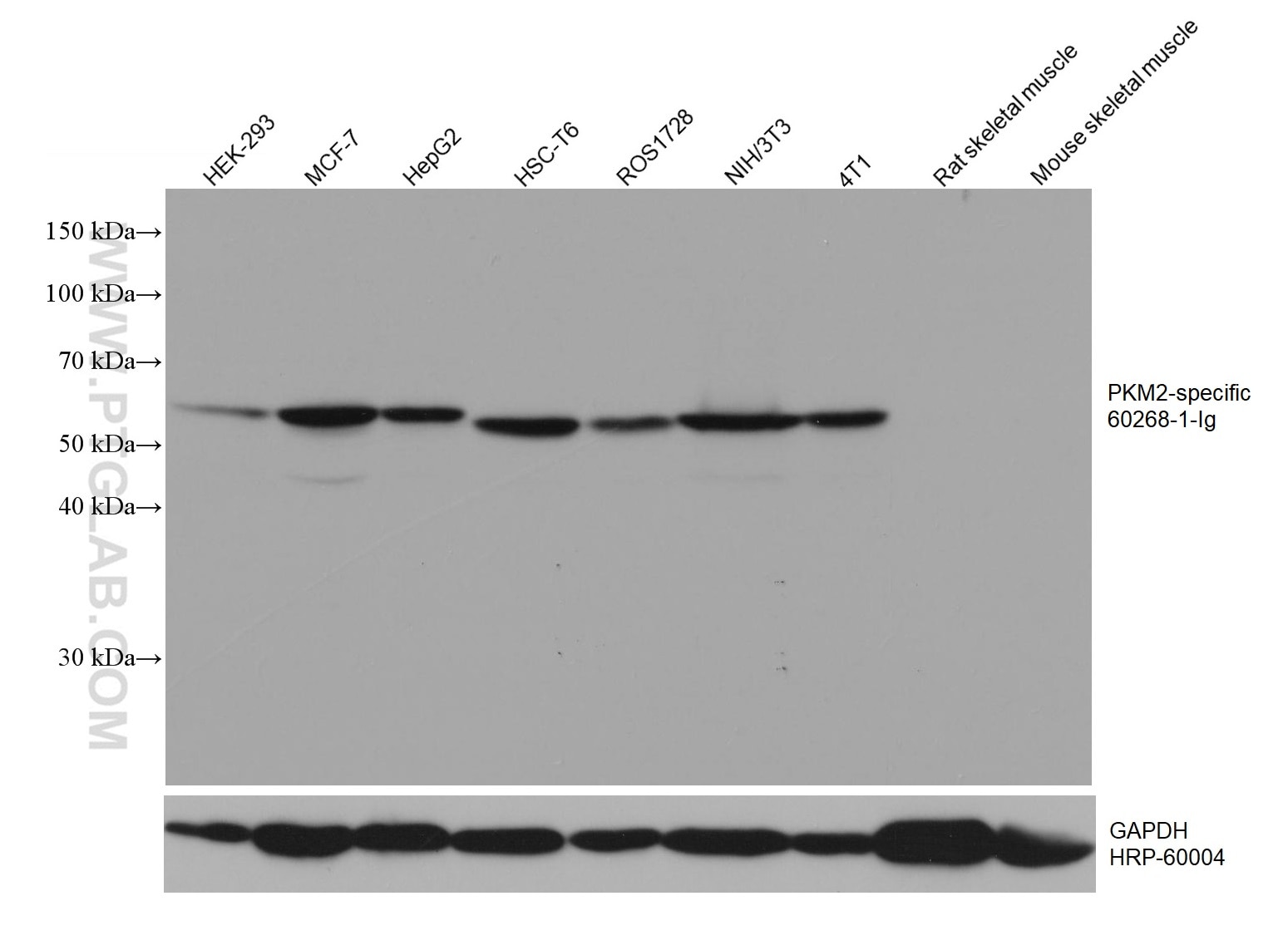 The PKM2-specific antibody from Proteintech is a mouse monoclonal antibody to a peptide of human PKM2-specific. This antibody recognizes human, mouse, rat antigen. The PKM2-specific antibody has been validated for the following applications: WB, IHC, IF/ICC, IP, ELISA analysis.