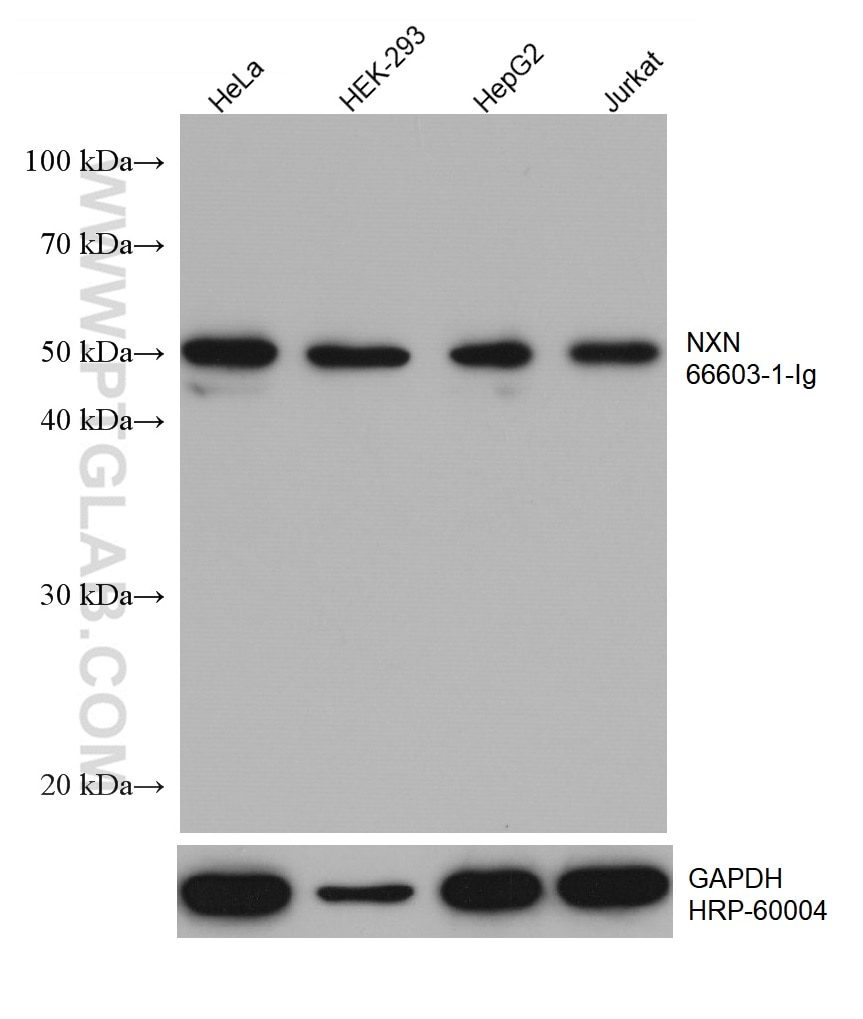 The NXN antibody from Proteintech is a mouse monoclonal antibody to a recombinant protein of human NXN. This antibody recognizes human, mouse, rat antigen. The NXN antibody has been validated for the following applications: WB, IHC, IF/ICC, ELISA analysis.