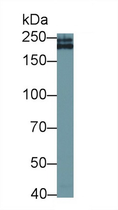 Western Blot; Sample: Rat Kidney lysate Primary Ab: 1.5μg/ml Mouse Anti-Human COL4a3 Antibody Second Ab: 0.2μg/mL HRP-Linked Caprine Anti-Mouse IgG Polyclonal Antibody (Catalog: SAA544Mu19)