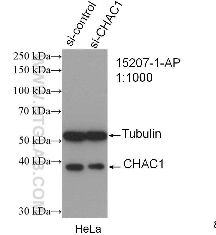 The CHAC1 antibody from Proteintech is a rabbit polyclonal antibody to a recombinant protein of human CHAC1. This antibody recognizes human, mouse, rat, hamster antigen. The CHAC1 antibody has been validated for the following applications: WB, IHC, ELISA analysis.