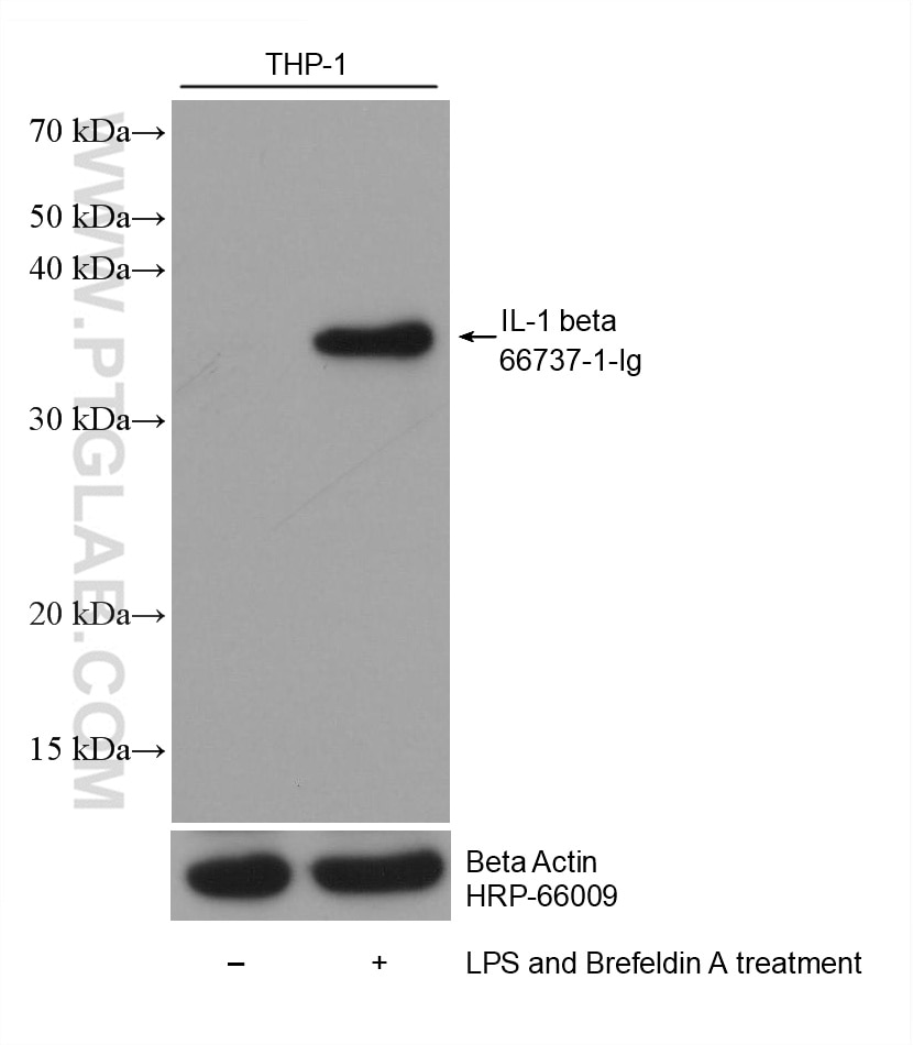 The IL-1 beta antibody from Proteintech is a mouse monoclonal antibody to a recombinant protein of human IL-1 beta. This antibody recognizes human antigen. The IL-1 beta antibody has been validated for the following applications: WB, IHC, ELISA analysis.