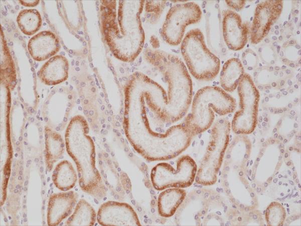 Figure 2. IHC result Immunohistochemical staining of formalin fixed and paraffin embedded human kidney tissue section using anti-p504s/AMACR rabbit monoclonal antibody (Clone RM349) at a 1:1000 dilution.