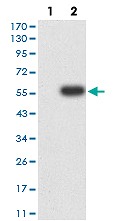 Western blot analysis of (1) HEK293 cells, (2) IL9R-hIgGFc transfected HEK293 cell lysate.