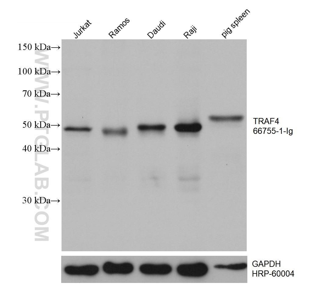The TRAF4 antibody from Proteintech is a mouse monoclonal antibody to a recombinant protein of human TRAF4. This antibody recognizes human, pig antigen. The TRAF4 antibody has been validated for the following applications: WB, IHC, IF/ICC, ELISA analysis.