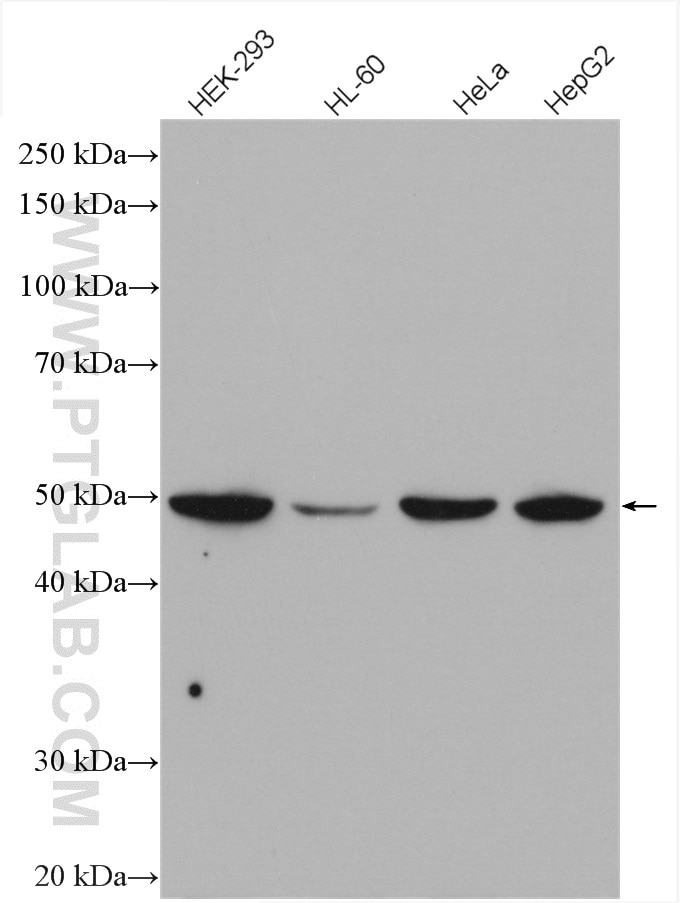 The RAD52 antibody from Proteintech is a rabbit polyclonal antibody to a recombinant protein of human RAD52. This antibody recognizes human antigen. The RAD52 antibody has been validated for the following applications: WB, IP, ELISA analysis.