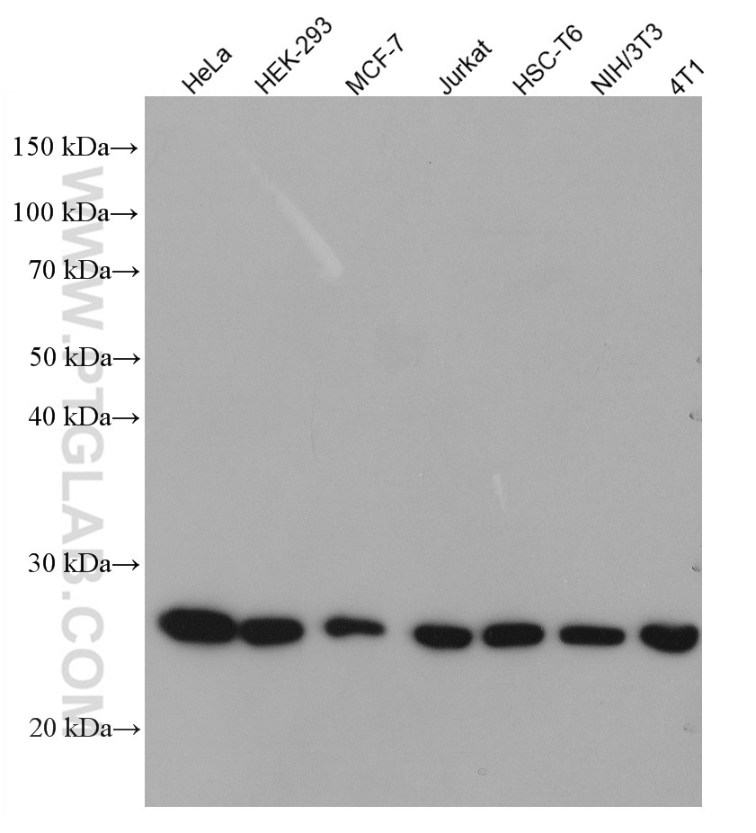 The PRDX1 antibody from Proteintech is a mouse monoclonal antibody to a recombinant protein of human PRDX1. This antibody recognizes human, mouse, rat antigen. The PRDX1 antibody has been validated for the following applications: WB, IHC, IF-P, ELISA analysis.