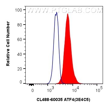 The ATF4 antibody from Proteintech is a mouse monoclonal antibody to a recombinant protein of human ATF4. This antibody recognizes human, mouse antigen. The ATF4 antibody has been validated for the following applications: IF/ICC, FC (Intra) analysis. This antibody is coraliteR plus 488.