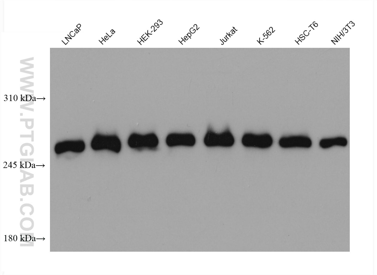 The mTOR antibody from Proteintech is a mouse monoclonal antibody to a recombinant protein of human mTOR. This antibody recognizes human, mouse, rat antigen. The mTOR antibody has been validated for the following applications: WB, IHC, IF/ICC, IP, ELISA analysis.