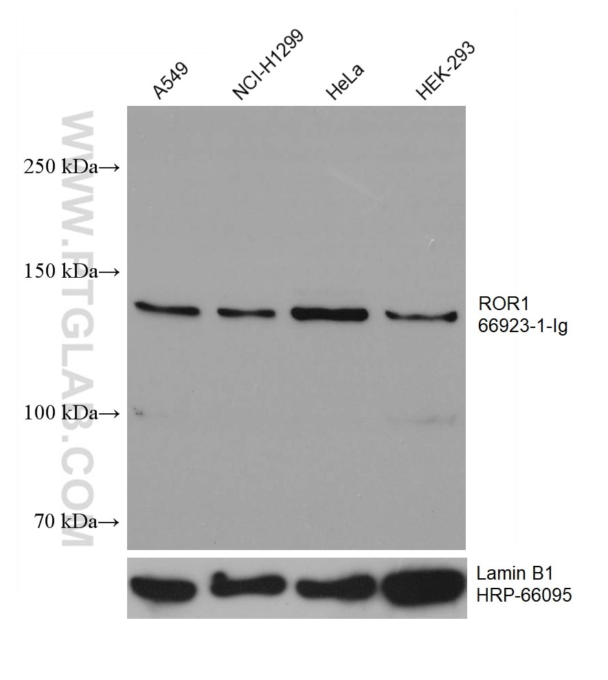 The ROR1 antibody from Proteintech is a mouse monoclonal antibody to a recombinant protein of human ROR1. This antibody recognizes human, mouse antigen. The ROR1 antibody has been validated for the following applications: WB, IHC, ELISA analysis.