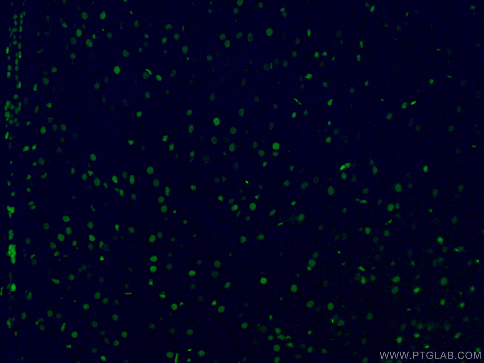 The SOX2 antibody from Proteintech is a mouse monoclonal antibody to a recombinant protein of human SOX2. This antibody recognizes human, pig, mouse antigen. The SOX2 antibody has been validated for the following applications: IF-P analysis. This antibody is coraliteR plus 488.